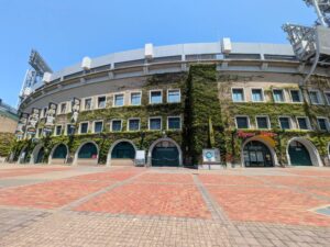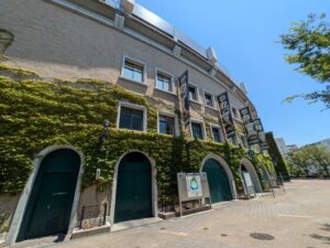 3日目は有馬温泉を後に「阪神甲子園球場」に向かいました。夏の風物詩と言えば全国高校野球の甲子園が思い浮かび車で40分位(約19Km)でしたので外観だけでも見学しようと思いました。当日も真夏日💦😅で妻と娘はベンチに座り動きませんでした。私だけ球場の外周をぐるりと歩いて回りました。写真等でおなじみのツタで覆われた外観を一目見れただけでも良い記念になりました!甲子園のシンボルであるツタが初めて植えられたのは、球場が建設された1924年の冬とされていて殺風景なコンクリート打ちっぱなしの外壁を彩るために発案されたアイデアだった様です。