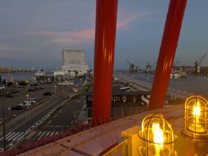その後は徒歩で「南京町」はにも行きました。横浜中華街、長崎新地中華街とともに日本三大チャイナタウンの一つに数えられ100軒以上の中華料理店をはじめ和洋料理店、食材店、雑貨店など多彩な店舗が軒を連ねてます。暑いので中華には関係ないかき氷を食べました(笑)。一旦ホテルにチェックインし休憩した後に初日に訪れた「神戸ポートタワー」や「BE KOBEモニュメント」など魅力的なスポットが並ぶ「メリケンパーク」に車で行きました。神戸ポートタワーは鼓型の外観で潮風を感じながら食事と夜景を鑑賞出来ました。2017年に神戸開港150年を記念に設置されたモニュメント「BE KOBE」という言葉は、阪神・淡路大震災から20年をきっかけに生まれた「神戸の魅力は人である」という思いを集約した、神戸を誇りに思う気持ちが込められているそうです。