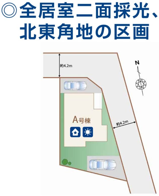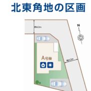 角地にて開放感有り・カースペース2台駐車可・諸条件ご相談下さい。