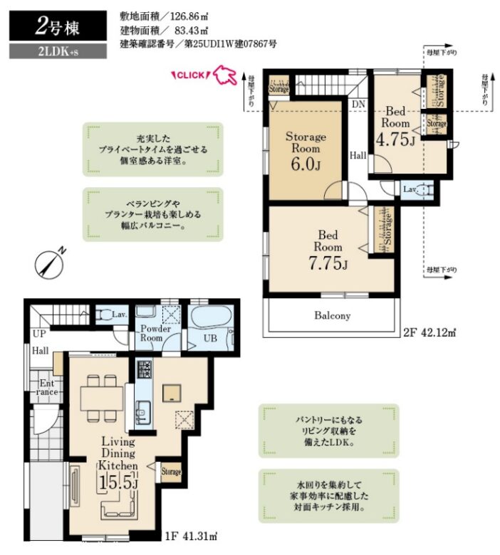 | 土地面積 | 126.86m2公簿 | 建物面積 | 83.43m2 |