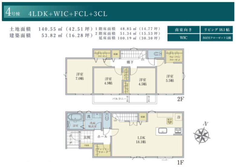 | 土地面積 | 140.55m2公簿 | 建物面積 | 100.19m2 |