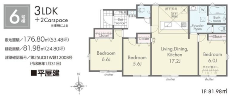 | 土地面積 | 176.80m2公簿 | 建物面積 | 81.98m2 |