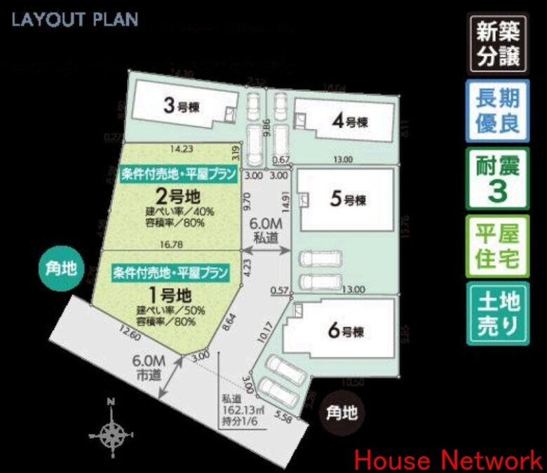 | 私道負担・道路 | 私道 西 6m 公道 南 6m |