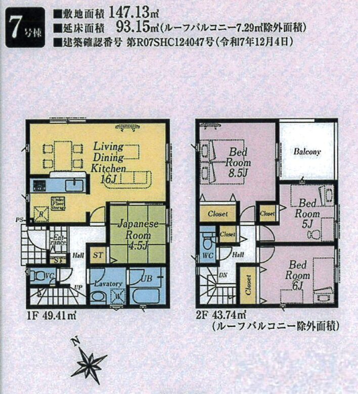 | 土地面積 | 147.13m2公簿 | 建物面積 | 93.15m2 |