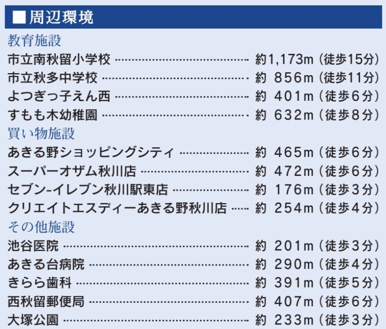 (8)主な住宅ローン金融機関:住信SBIネット銀行・三井住友銀行・西東京農業協同組合・中央労働金庫・フラット35取扱い金融機関等。