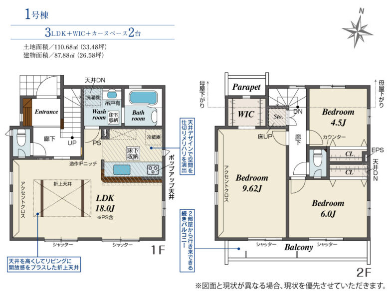 | 土地面積 | 110.68m2公簿 | 建物面積 | 87.88m2 |